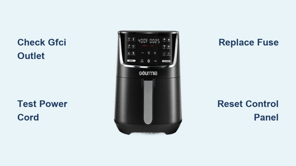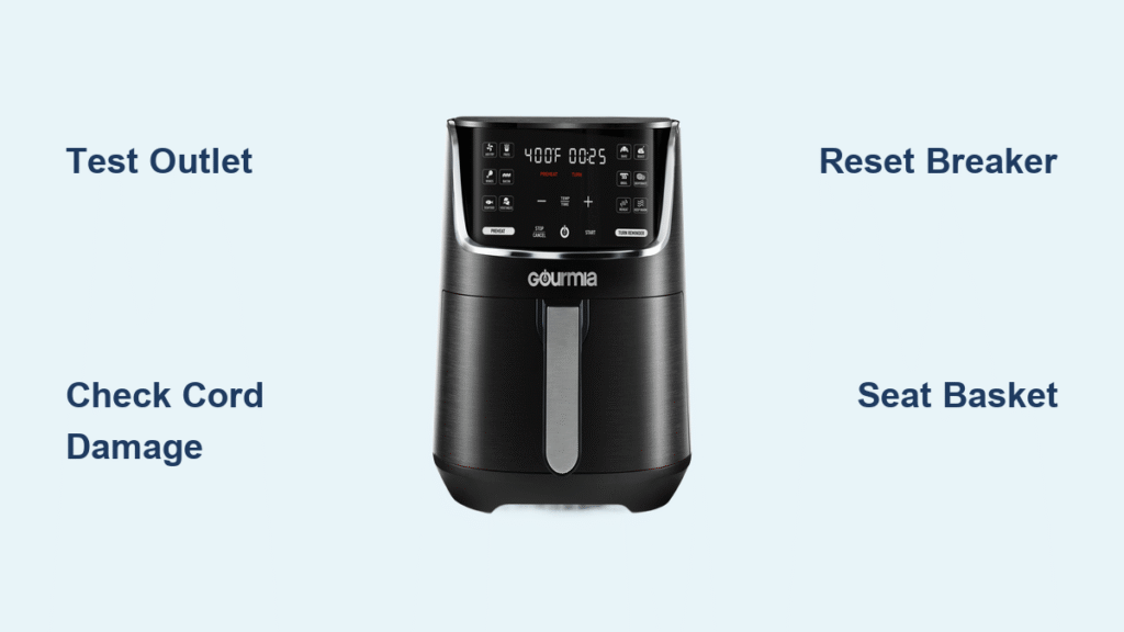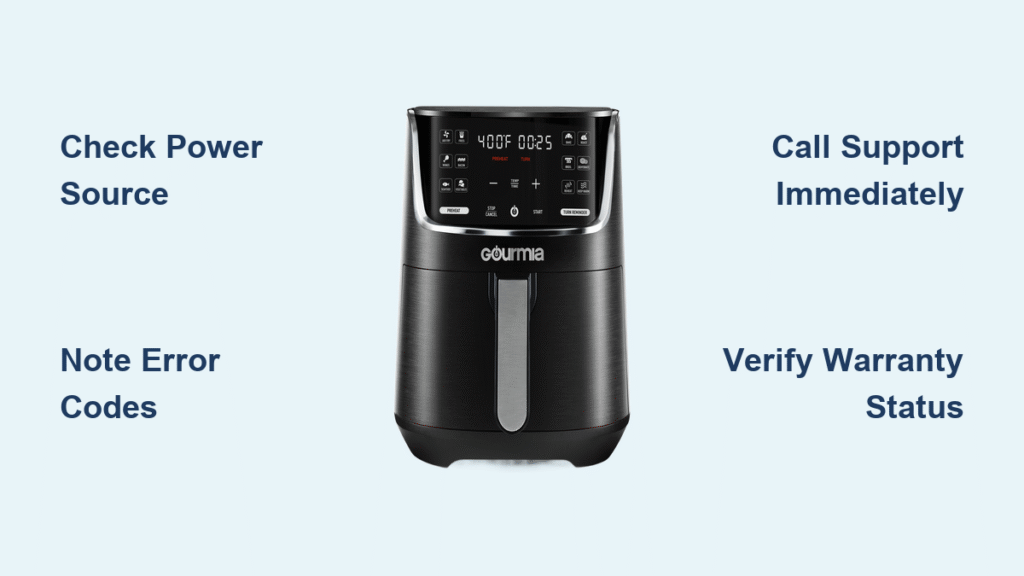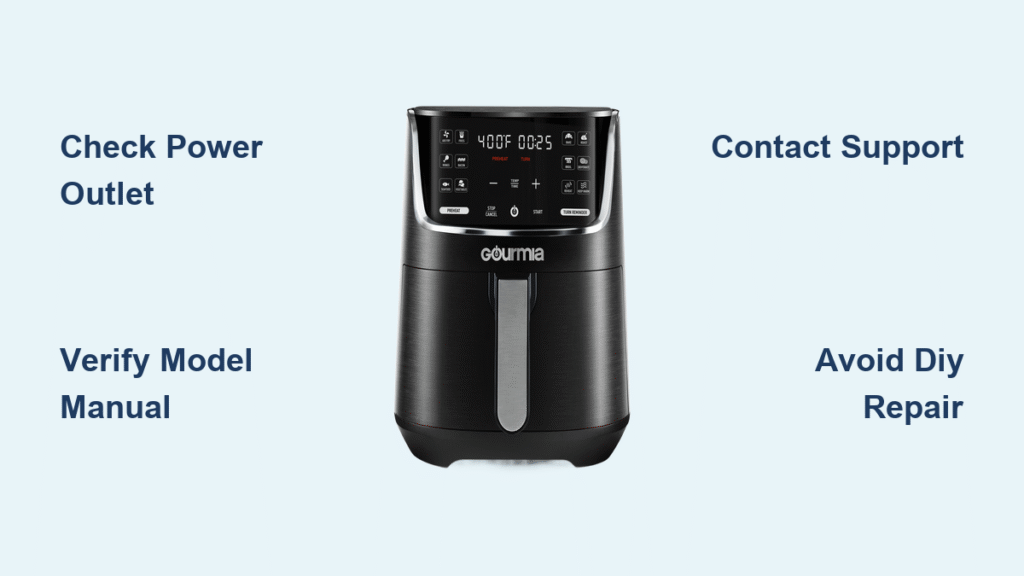 Your Gourmia air fryer sits lifeless on the counter despite being plugged in—no lights, no sounds, no heat. This frustrating