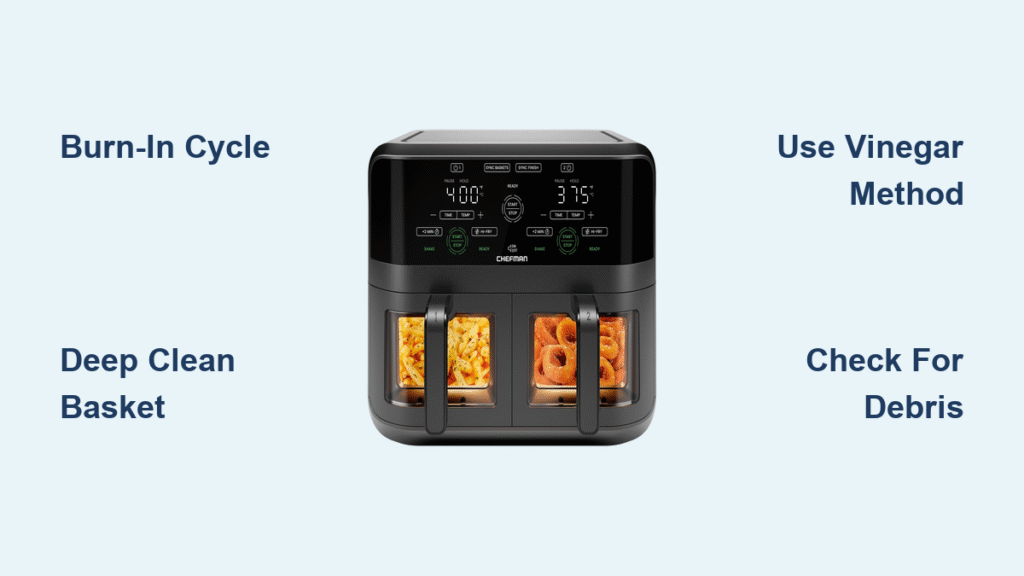 That burnt smell when you preheat your air fryer isn’t normal—it’s your heating element crying for help. Months of oil
