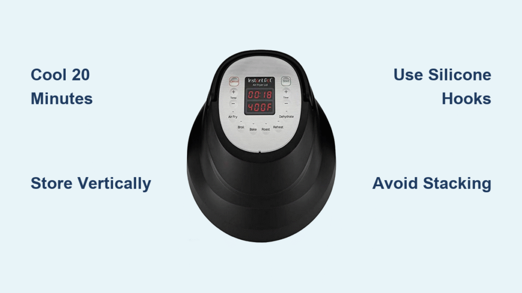 Your Instant Pot air fryer lid just finished crisping tonight’s dinner, and now it’s sitting there—hot, bulky, and devouring precious