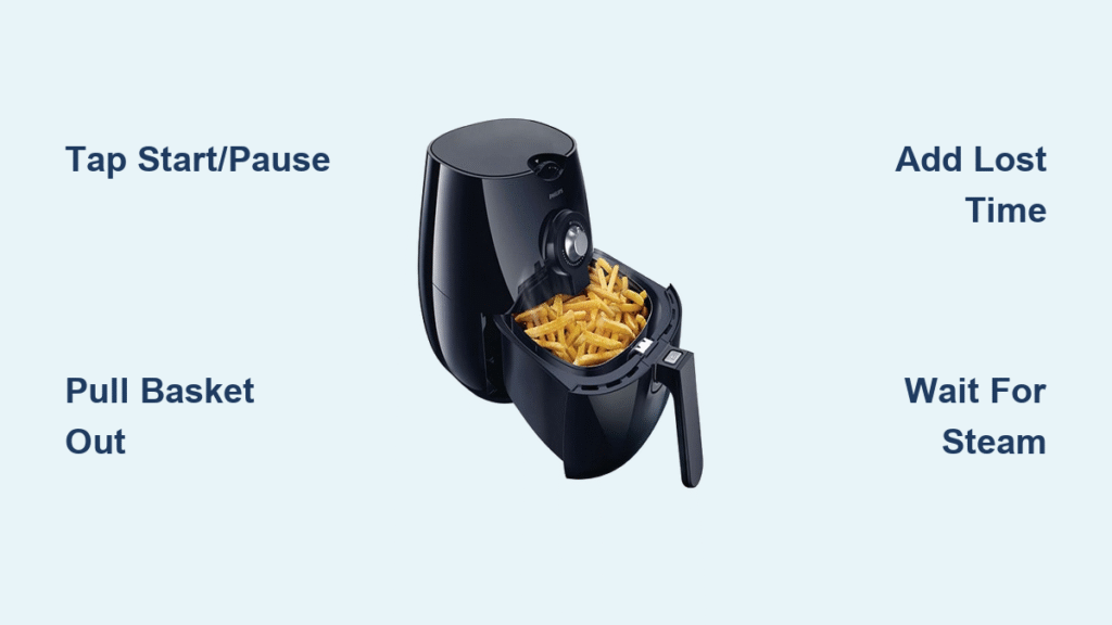 Your chicken wings are halfway through cooking when you notice uneven browning. You need to shake the basket immediately—but pressing