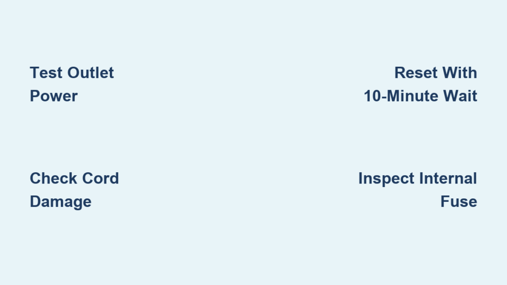 Your Cosori air fryer sits completely dead on the counter—no lights, no fan noise, no response when you press buttons.