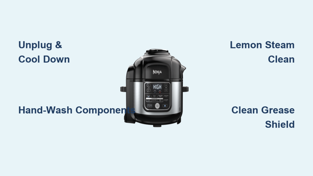 When spills happen (like boiling-over soup), unplug immediately and allow full cool-down before cleaning. Attempting emergency cleanup on hot surfaces risks severe burns from steam explosions. Remember: Consistent light cleaning takes 5 minutes daily but prevents 30-minute deep cleans later. Your Ninja Foodi will deliver perfect crispy results for years when you master how to clean your Ninja air fryer pressure cooker the right way. Start today—your next meal depends on it.