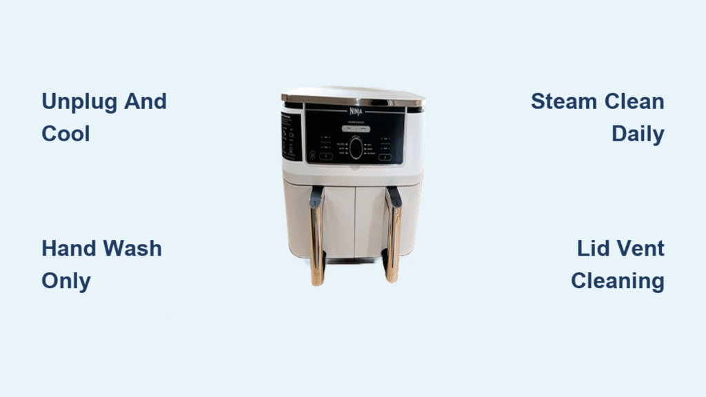 Your Ninja Foodi air fryer transforms weeknight dinners with crispy perfection, but grease buildup and food residue quickly sabotage its performance. That stubborn cheese crust from last night’s wings or lingering fish odor? They’re not just unpleasant—they force your appliance to work harder, extending preheat times and creating uneven cooking results. Knowing how to clean Ninja Foodi air fryer components properly ensures consistent crisping power and prevents costly replacements. This guide delivers actionable methods for daily wipe-downs to deep lid cleaning, all verified through Ninja’s official care protocols. You’ll reclaim peak performance in under 30 minutes without damaging your investment.