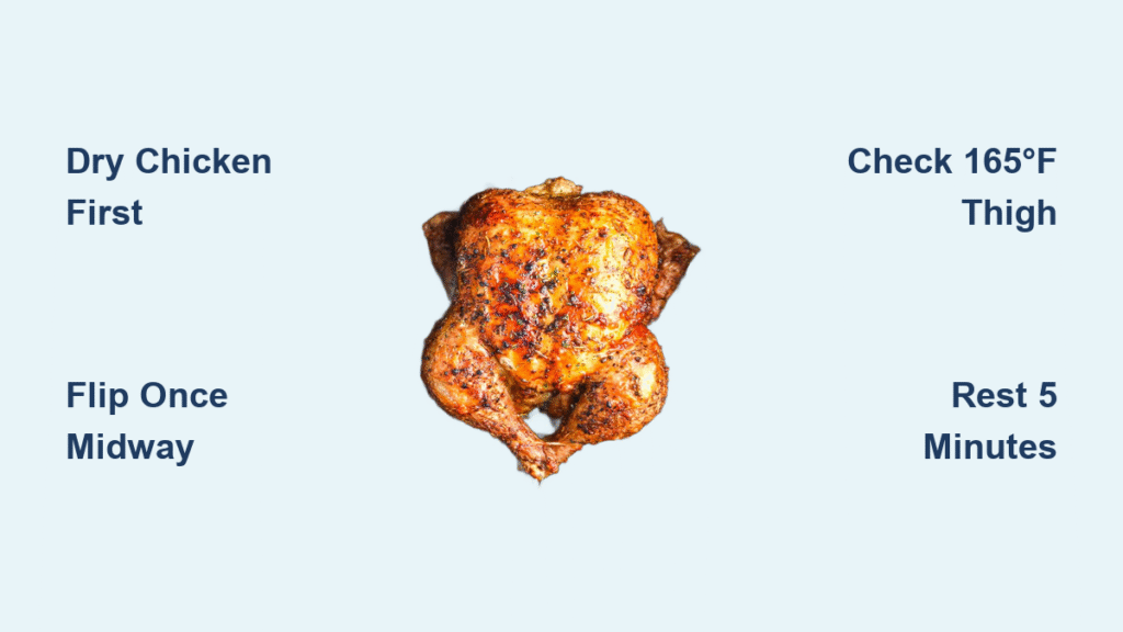The secret? Hot air circulating at jet-engine force, rendering fat while crisping skin. Unlike roasting, there’s no waiting for an oven to preheat or basting every 20 minutes. Just set it, flip it once, and walk away. In this guide, you’ll master sizing, seasoning, and the critical flip technique that prevents burnt wings and pale patches. Let’s turn that whole chicken into your most reliable weeknight hero.