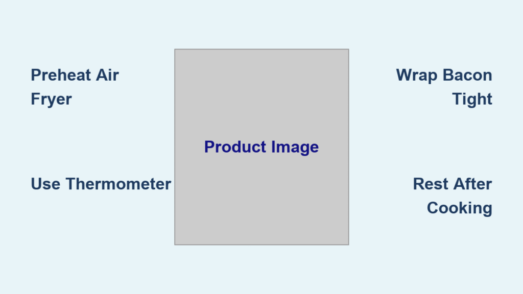 Skip the frustration of improvising with wrong equipment. Your air fryer basket must accommodate steaks in a single layer without touching—overcrowding causes steaming instead of crisping. An instant-read thermometer is non-negotiable; visual cues deceive when determining doneness. Use toothpicks or small metal skewers (never wood—they’ll scorch) to anchor bacon securely as it shrinks dramatically during cooking.