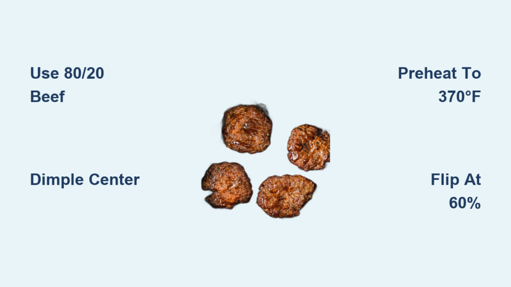 Critical flip timing: Flip when patties release easily from the basket (about 60-70% cooked). Forgetting to flip = pale undersides and uneven doneness. If juices pool on top before flipping, your air fryer’s too hot—reduce temp by 25°F next time.