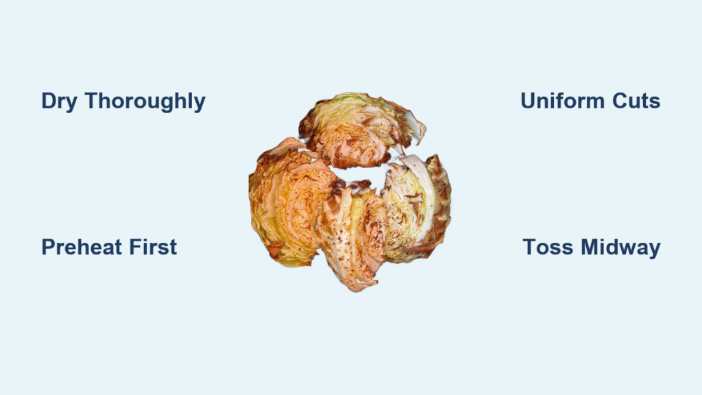 Soggy results come from overcrowding or wet cabbage. Solution: Cook in smaller batches and ensure leaves are completely dry before seasoning. For dense wedges, insert a toothpick through the core before cooking—it creates steam channels that prevent sogginess while maintaining structure.