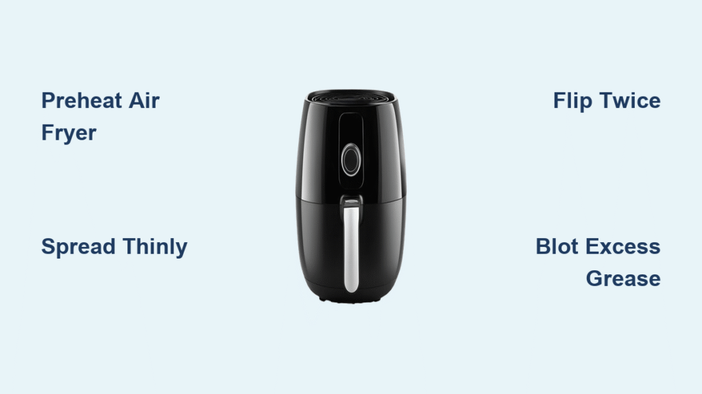 Flip and break up clumps at least twice during cooking—this redistributes heat and prevents cold spots. Rotate the basket 180 degrees halfway through if your air fryer has hot zones. For extra crunch, sprinkle 1 tsp cornstarch over hash before the final flip; it absorbs moisture and amplifies crispness.
