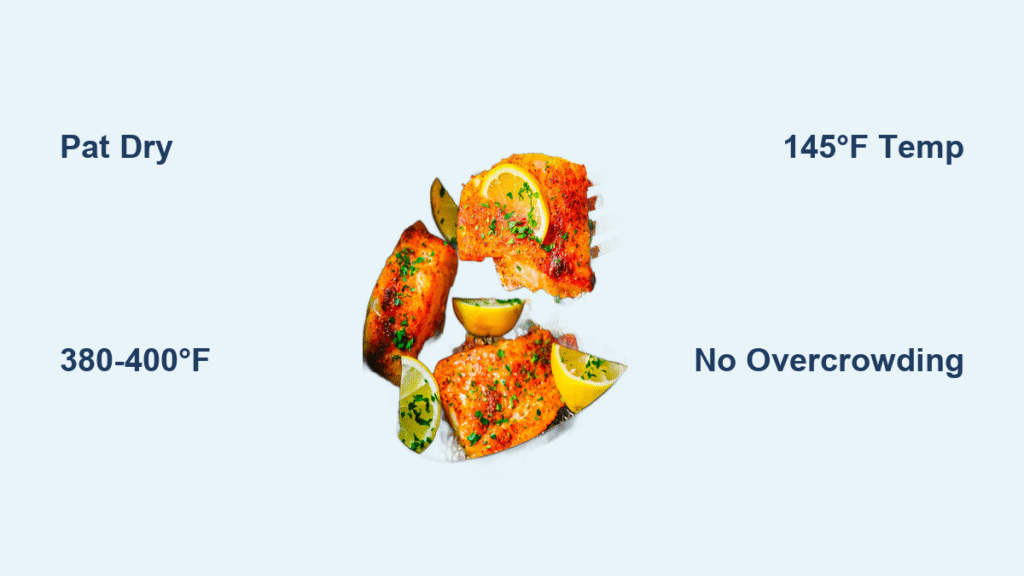 Preheating for 5 minutes may seem unnecessary, but it creates immediate searing that locks in moisture and prevents sticking. Never load cold fillets into a cold basket—this guarantees uneven cooking. Lightly coat the basket with oil using a paper towel or line with perforated parchment. Solid foil sheets block airflow and create steaming conditions that ruin texture.