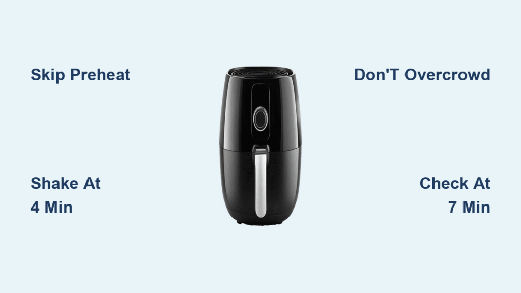 Pro Adjustment: If using preheated air fryer, subtract 1 minute from all times. Smaller baskets (under 4 qt) require 390°F to prevent edge scorching.