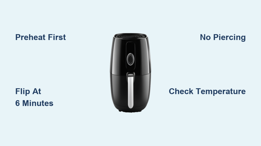 Skipping preheating is the #1 cause of rubbery casings. Run your air fryer empty for 2–3 minutes at target temperature—this primes the basket to sear on contact. Without preheating, sausages sweat instead of sizzle, steaming themselves in released fat. For 400°F cooking, extend to 5 minutes; the thermal shock creates instant crust formation. You’ll hear a distinct sizzle within 30 seconds of loading links—your signal that juices are sealing in.