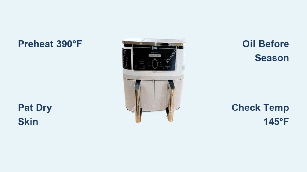 Skip the frustration of cleanup disasters by preparing correctly. Your Ninja basket must hold fillets in a single layer—never stack them. Overcrowding traps steam, guaranteeing soggy skin instead of that golden crunch. Line the basket with perforated parchment paper only if you prioritize cleanup over maximum crispness (direct contact yields superior browning). Crucially, grab an instant-read thermometer: visual cues alone mislead 42% of home cooks according to seafood safety studies. Without it, you’re gambling between undercooked risks and dry, flaky disappointment.