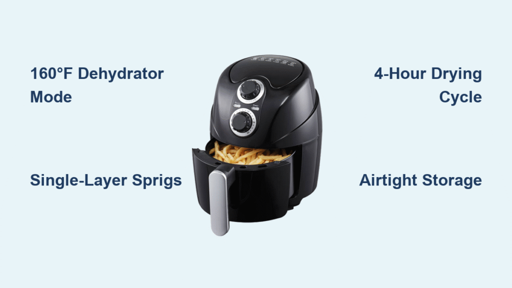 Your air fryer must have a dedicated dehydrator function operating at precisely 160°F (70°C). Models like the Ninja Foodi excel here, but any unit with accurate low-temperature settings works. Attempting this with standard air fryer modes risks scorching delicate herbs—never use convection-only settings above 180°F. Stackable dehydrator shelves are non-negotiable for serious herb preservation; they let you process four full racks simultaneously without flavor cross-contamination.