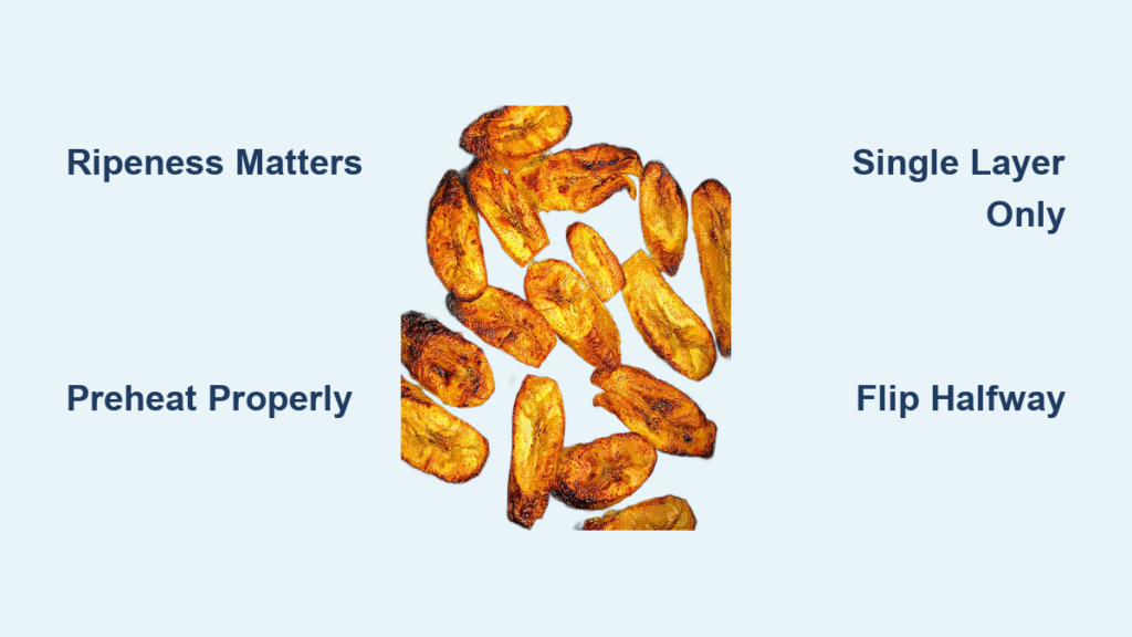 Cause: Overly ripe plantains + high heat = sugar combustion. Solution: Reduce temperature by 25°F and check 3 minutes early. For black-skinned plantains, always use 360°F max.