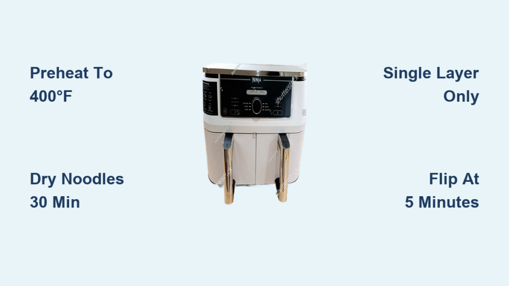 400°F isn’t optional—it’s the scientific sweet spot where starches caramelize without scorching. Lower temps create leathery noodles; higher temps char thin edges before centers crisp. All Ninja models (AF100, AF161, or Foodi) require identical settings—no adjustments for basket size.