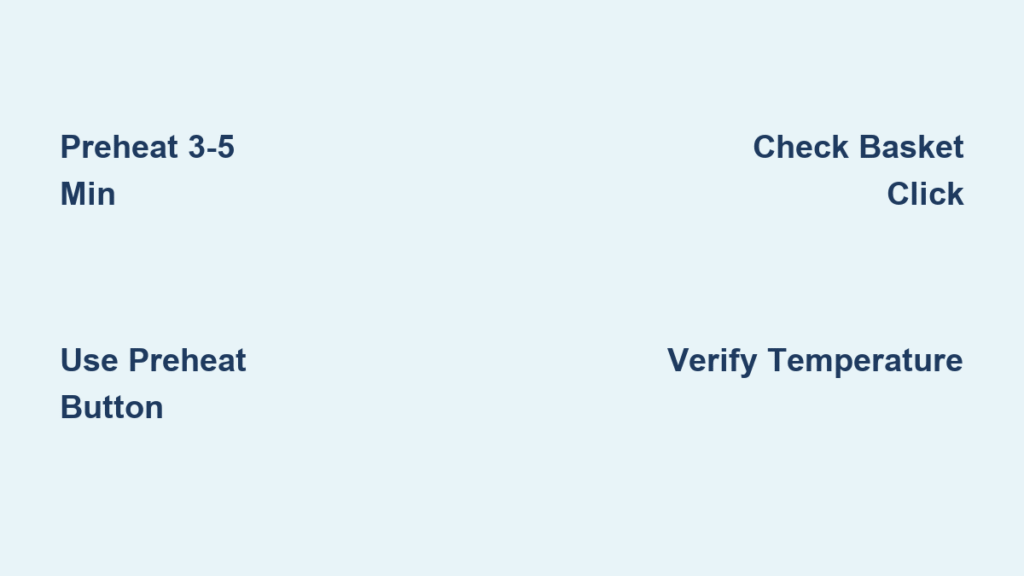 A partially inserted basket triggers safety shutoffs and causes uneven heating. Always push the basket until it clicks firmly into place—clean the basket track monthly to prevent sticking that leads to improper positioning. This simple action ensures consistent preheating and prevents frustrating error messages during operation.