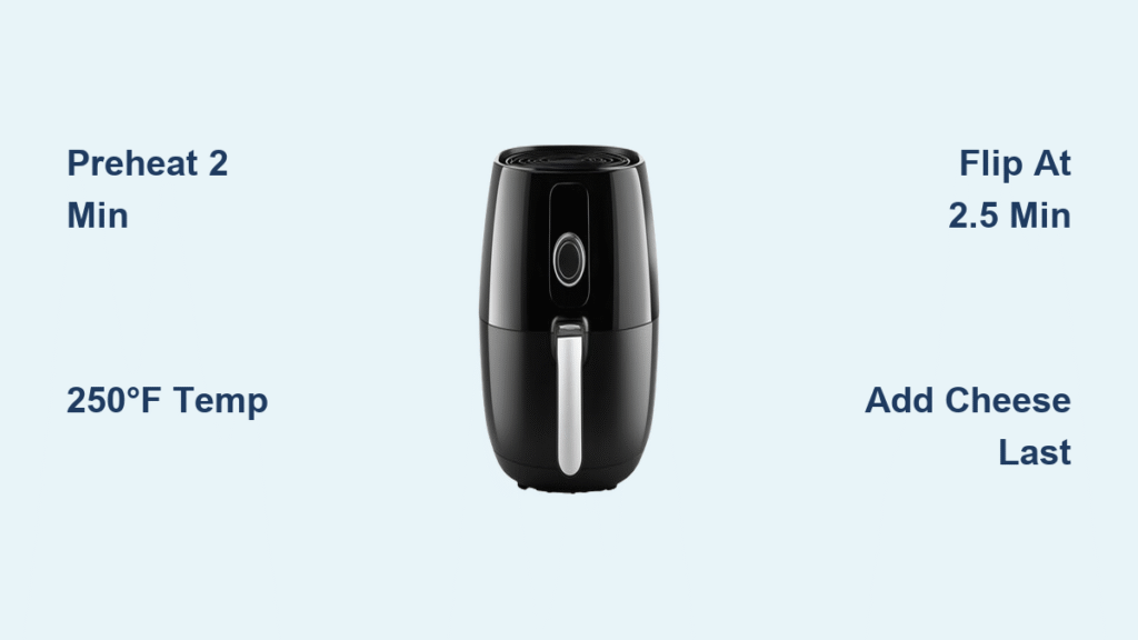 Preheat for exactly 2 minutes at your target temperature—this eliminates the 90-second warm-up lag that causes uneven heating. Modern air fryers technically don’t require preheating, but skipping this creates cold spots where cheese congeals. Place the empty basket inside during preheating so it reaches optimal temperature. You’ll hear the fan stabilize—that’s your signal to load the sandwich.