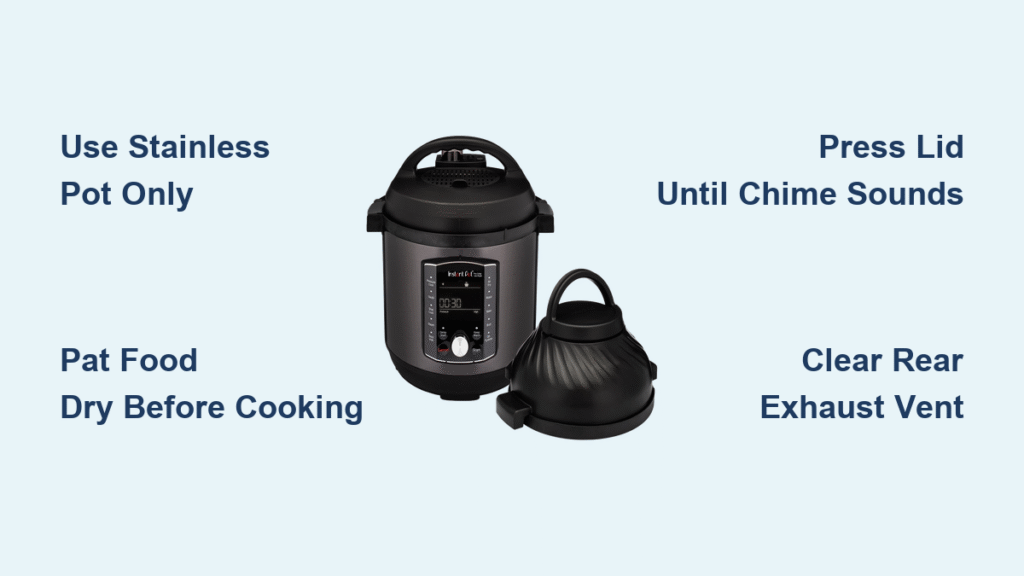 The Pro Crisp isn’t just another attachment—it’s a complete 1,500-watt convection system engineered to replace your standalone air fryer. Unlike basic pressure cookers, this 8-quart powerhouse uses dual lids: the standard pressure lid and the air fryer lid with its built-in heating element and high-velocity fan. Most users don’t realize the copper sensor pads require perfect contact for operation, or that ceramic pots will shatter during air frying. Within minutes, you’ll master installation, programming, and troubleshooting like a pro. Whether you’re reviving last night’s pizza or roasting a whole chicken, these verified techniques work flawlessly for frozen fries, delicate fish, and even cupcakes.