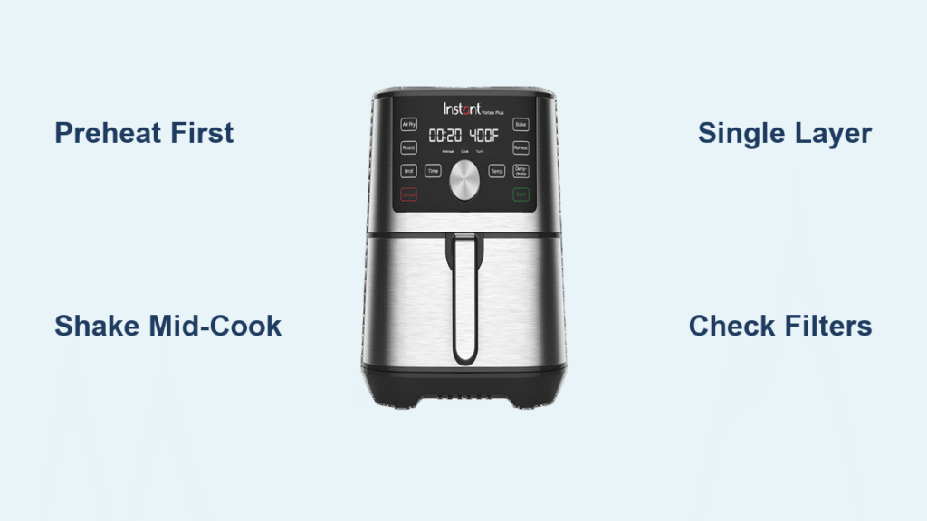 That shiny Instant Vortex air fryer sitting on your counter holds the secret to restaurant-quality fries with just a tablespoon of oil and perfectly roasted chicken without heating up your entire kitchen. If you’ve ever pulled soggy frozen fries from a conventional oven or battled with confusing appliance manuals, you’re not alone. Mastering how to use instant vortex air fryer technology transforms your cooking from guesswork to guaranteed crispiness—and this guide delivers exactly what you need to know. In just minutes, you’ll move from unboxing to creating golden-brown perfection that makes this your most-used kitchen appliance.