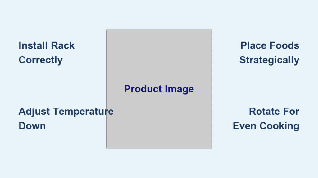 Never skip this critical first step: An improperly seated rack causes uneven cooking and dangerous tipping. For single-level cooking (like reheating leftovers or crisping wings), place the rack with legs facing down into the basket grooves. You’ll hear a distinct click when fully seated—this creates 1-2 inches of clearance for optimal airflow under foods.