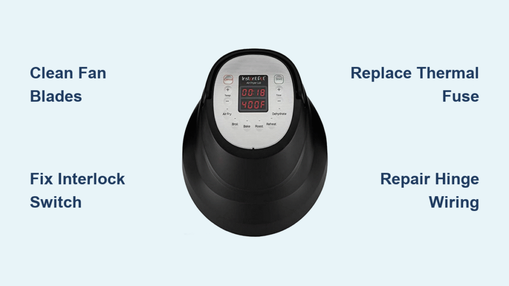 Critical check: After repair, bend the hinge 10 times. If fan stays on, you’ve fixed the Instant Pot air fryer lid fan not working issue permanently.