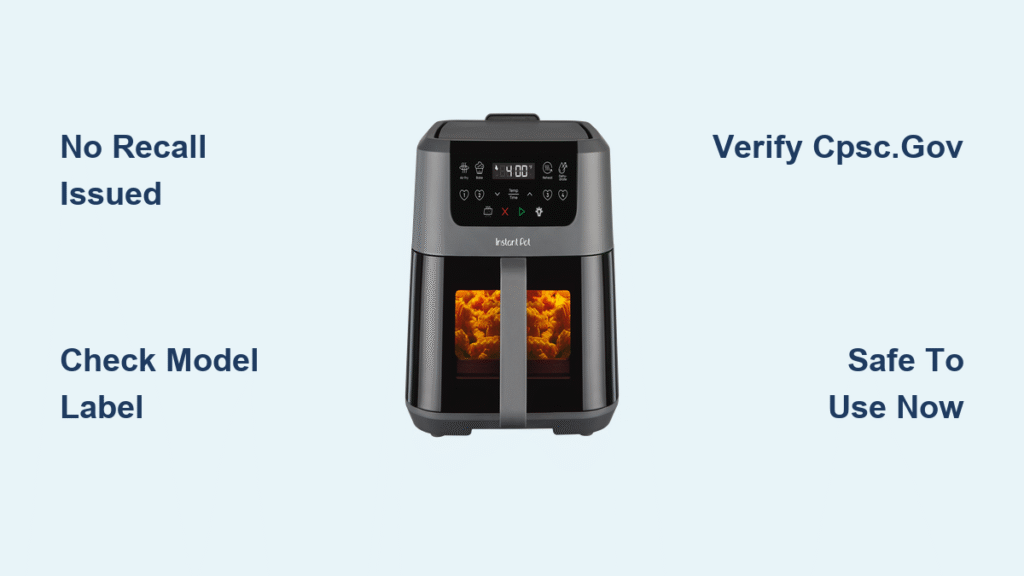 Your Instant Pot air fryer is not recalled—period. The panic stems from Cosori, Insignia, and PowerXL air fryers posing real fire and shatter risks. Bookmark CPSC.gov/recalls and perform these two critical actions today:
