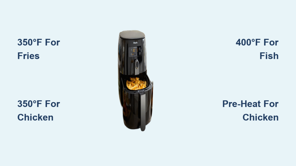 Stop scrolling through blurry forum photos for temperature clues. Your Philips air fryer delivers flawless results when you match these verified settings to your food type. Crucially, temperature determines texture—too low causes steaming, while too high creates a leathery crust around undercooked interiors.