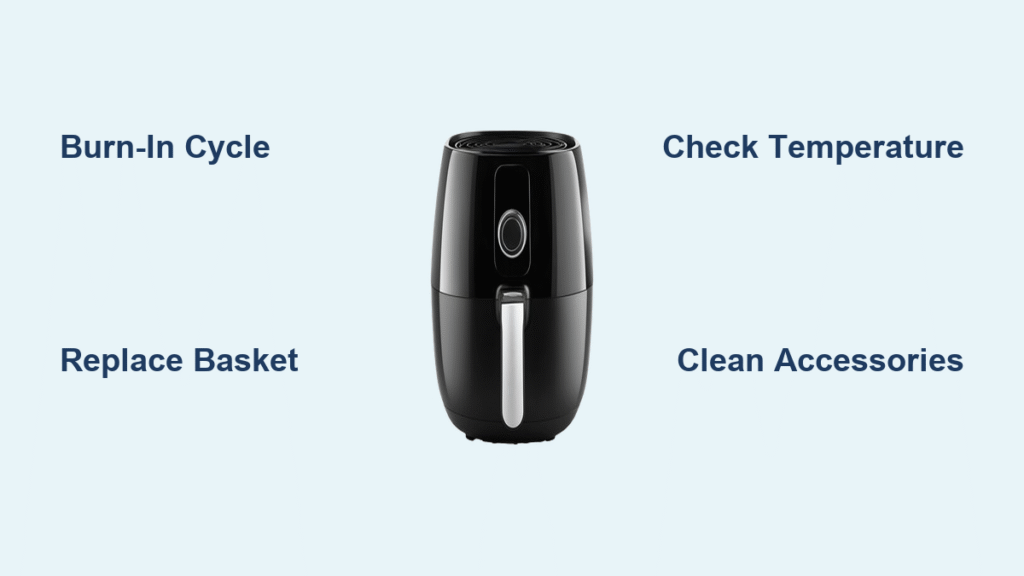Skipping this critical step guarantees plastic-tainted food. Most users make the mistake of cooking immediately, but residues need dedicated burn-off time. Run two empty cycles at 200°C for 20 minutes each (with 10-minute cooling breaks in between) in a well-ventilated kitchen. For stubborn odors, add 2 tablespoons of white vinegar to the basket during the second cycle. This acidic steam neutralizes lingering volatile organic compounds (VOCs) that cling to heating elements. Pro tip: Place a bowl of water on your counter during burn-in—it absorbs airborne particles, reducing kitchen odors by 70%.